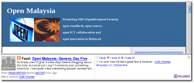 I first found out about it, through Jeremy Zawodny’s blog post. He mentioned he liked the fact that people could comment on activities. I see this as no different to how people can have conversations within Mugshot (also known as quips). And with the Mugshot client, these comments tend to become interactive, so it starts becoming an immediate conversation with people that are around.